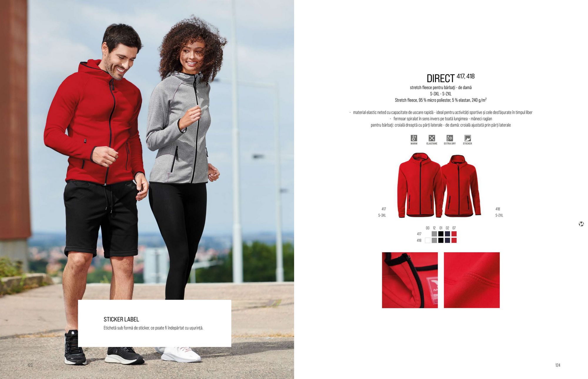 Gewebe: Stretch Fleece, 95 % Micro polyester, 5 % Elastan, 240 gr