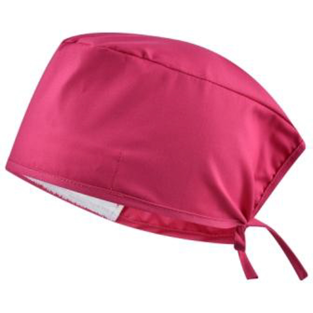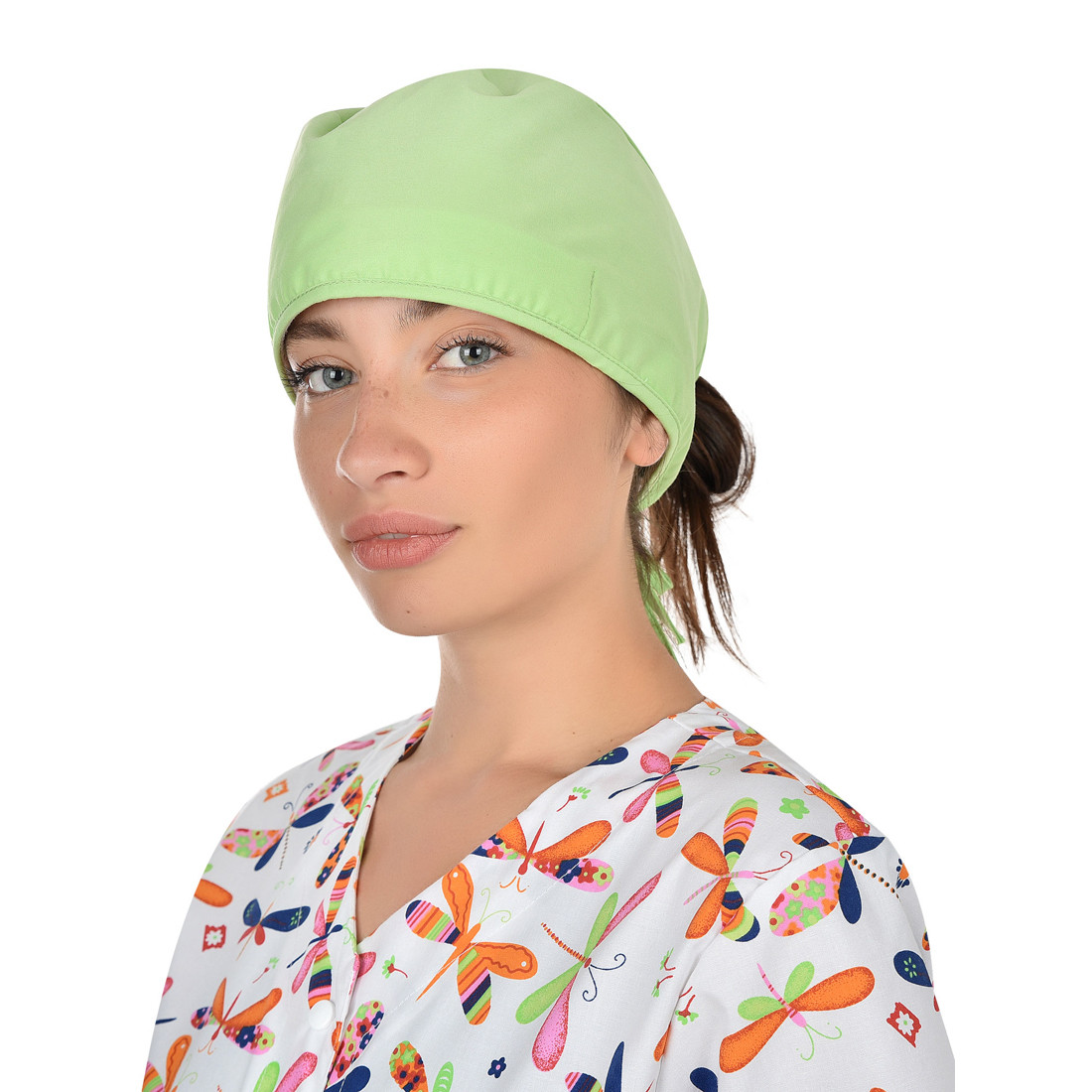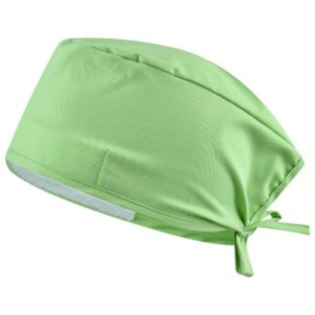 Beschreibung: Chirurgischer Mütze mit schweißband im Stirnbereich. Universalgröße, Befestigung mit Spitze.