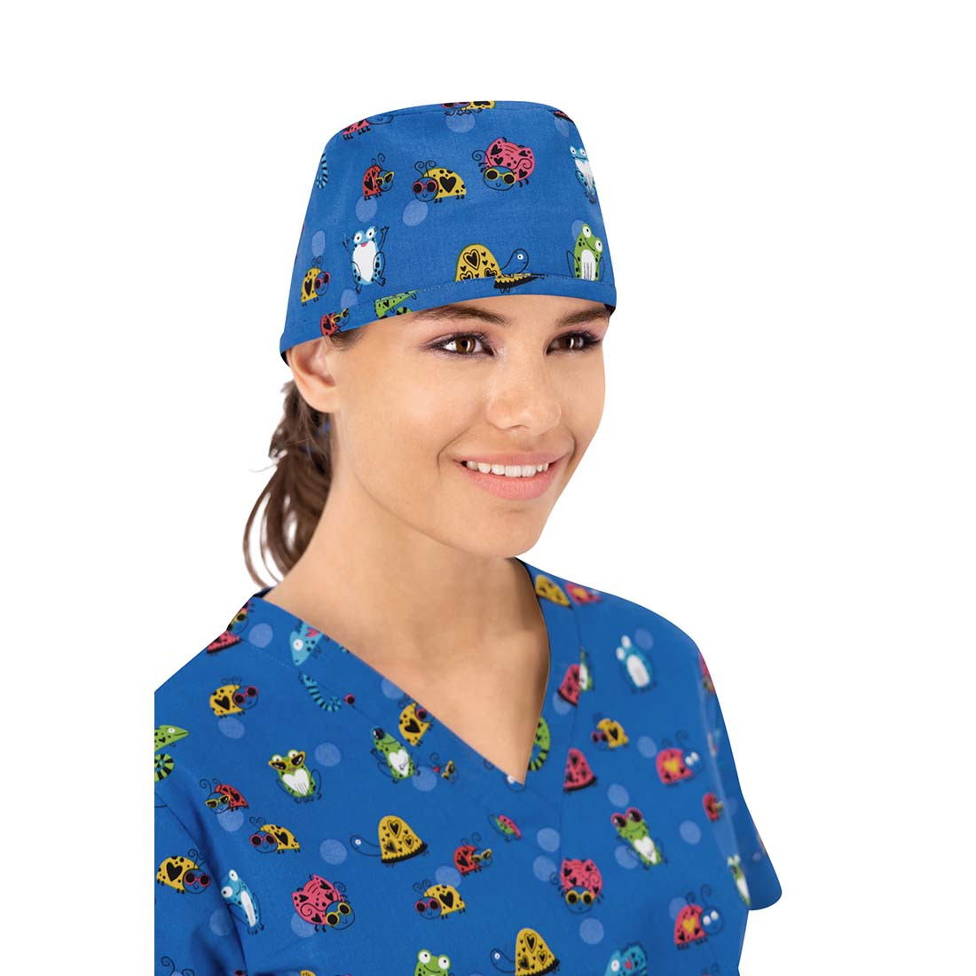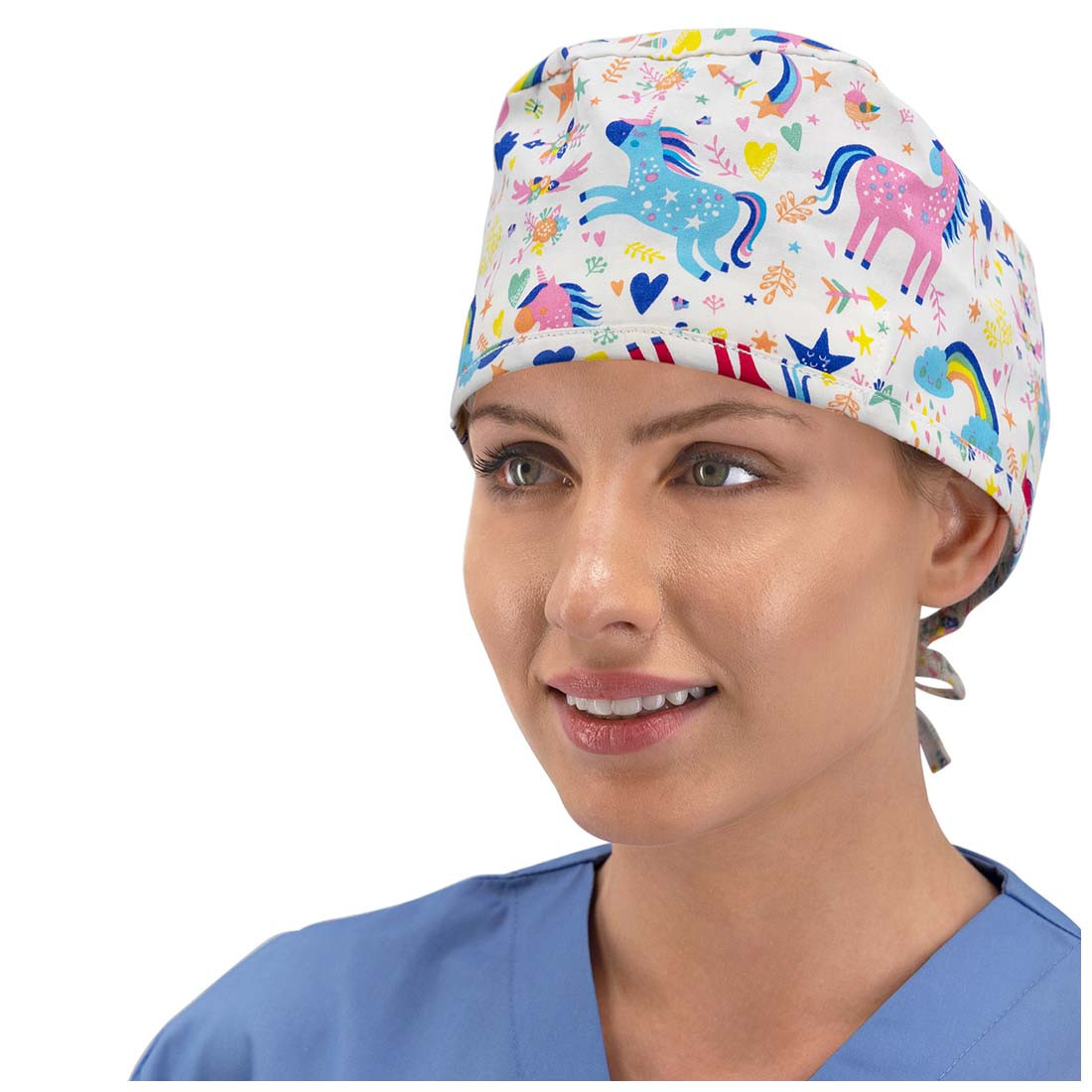 Beschreibung: Chirurgischer Mütze mit fröhlichen Druckmustern, aus hochwertigem Elasthan-Material und 3D FLEX-Technologie für verbesserten Tragekomfort. Schweißband im Stirnbereich. Universalgröße, Befestigung mit Spitze.