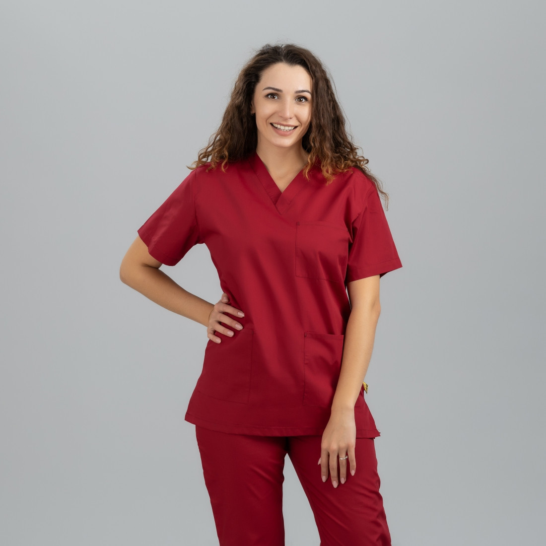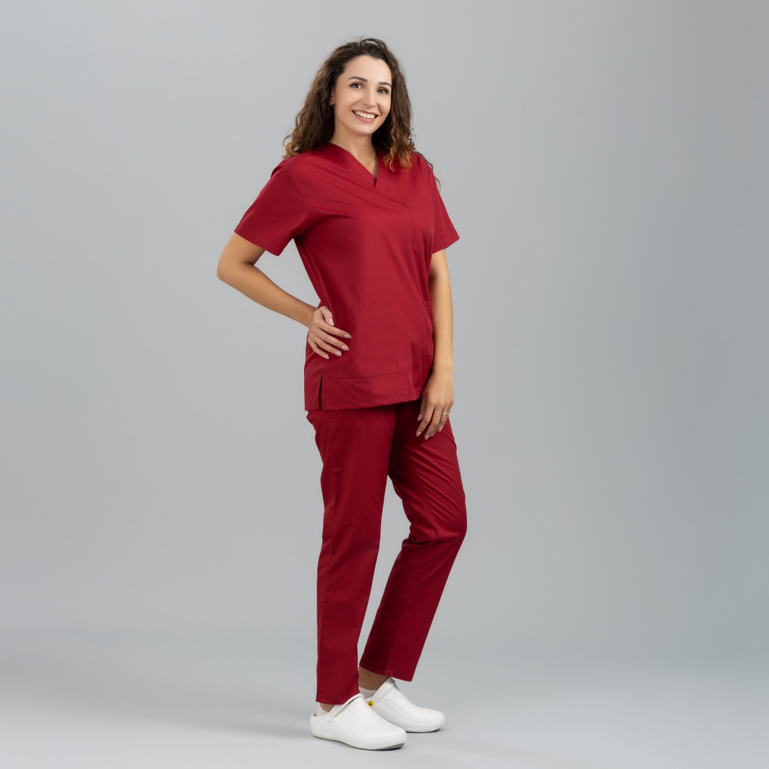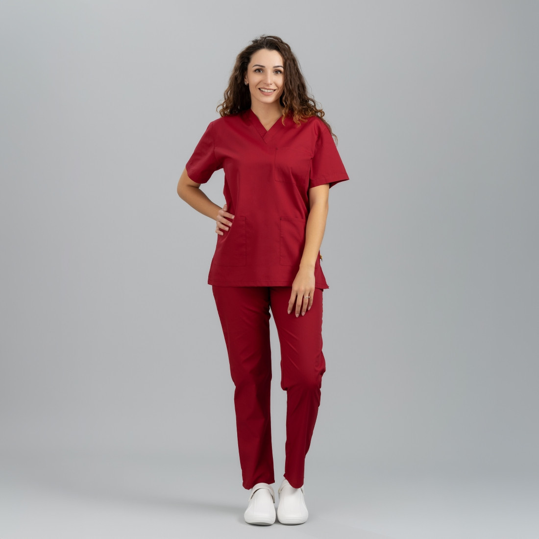 Beschreibung: Medizinischer Anzug, bequemer Unisex-Schnitt. Hergestellt aus hochwertigem Material mit Technologie für hohe Stoffbeständigkeit nach mehreren Wäschen. Die Tunika hat kurze Ärmel, einen V-Ausschnitt und drei Taschen. Die Hose hat einen elastischen Bund und eine Gesäßtasche. Hinweis: Zwischen den Maßen in der Größentabelle und den tatsächlichen Maßen kann es aufgrund der Handarbeit zu Abweichungen von ca. 1 cm kommen.