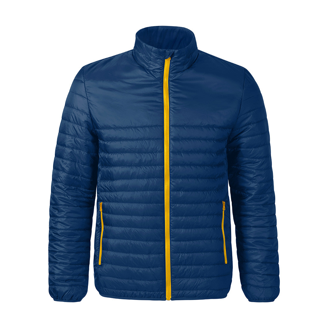 Description: Jacket made of light and warm quilted material, which ensures optimal thermal insulation. Thanks to the water-repellent finish, it protects you even from light rain. Features two side zippered pockets and an interior velcro pocket for valuables. Easy to pack it into the special inner pocket so that you always have it close at hand, whether you're on an outdoor trip or at your favorite party. All color options are designed with contrasting lining and zips (except the black version). Branding access in the side seam of the lining allows for easy logo placement.