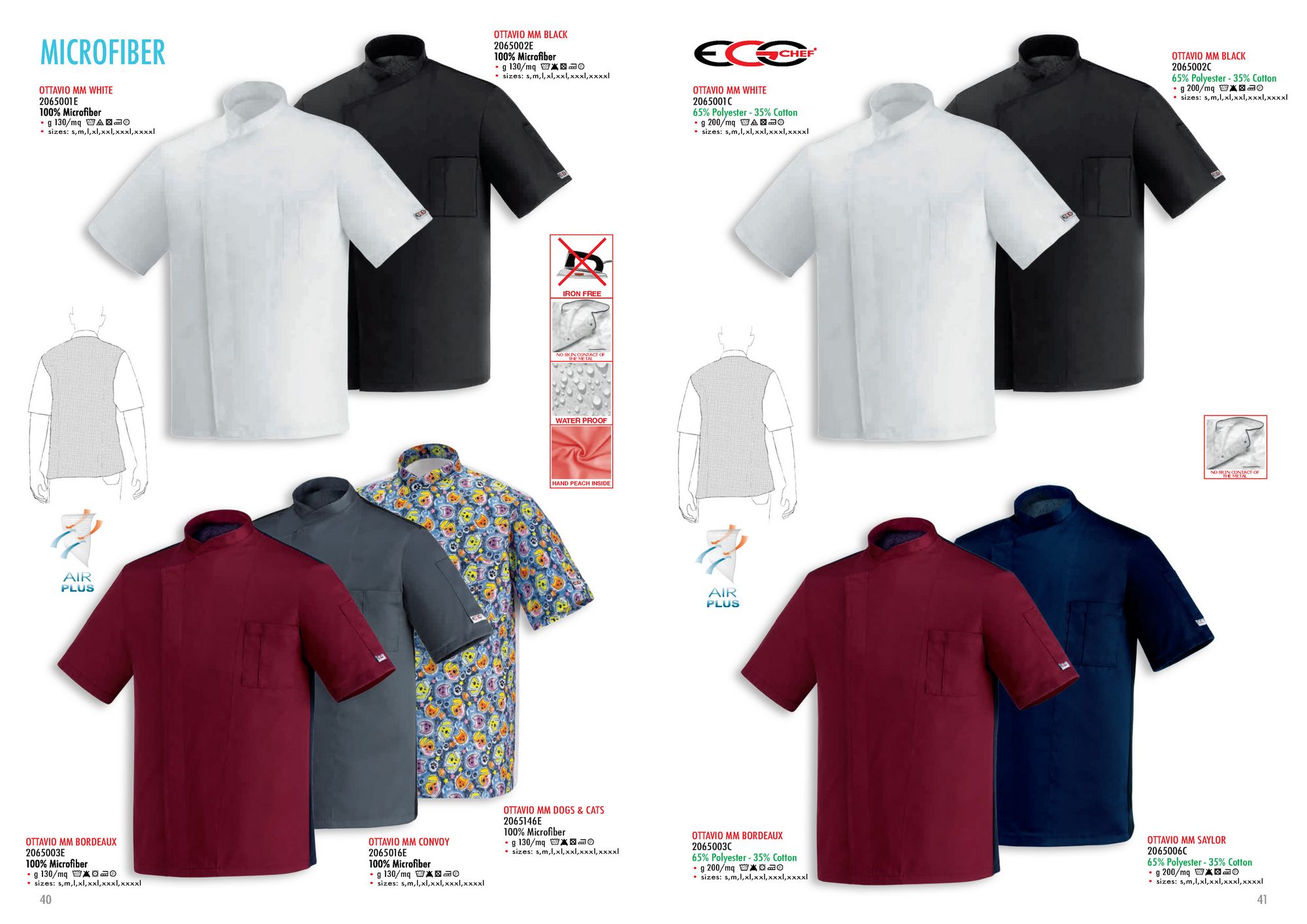 Descripción: Chaqueta de chef unisex, cierre frontal con grapas y paneles de tejido transpirable Air Plus en la espalda. Manga corta. Cuello túnica. Bolsillo con compartimento para bolígrafo aplicado en el pecho izquierdo. Logotipo de Egochef y bolsillo para bolígrafo en la manga izquierda.