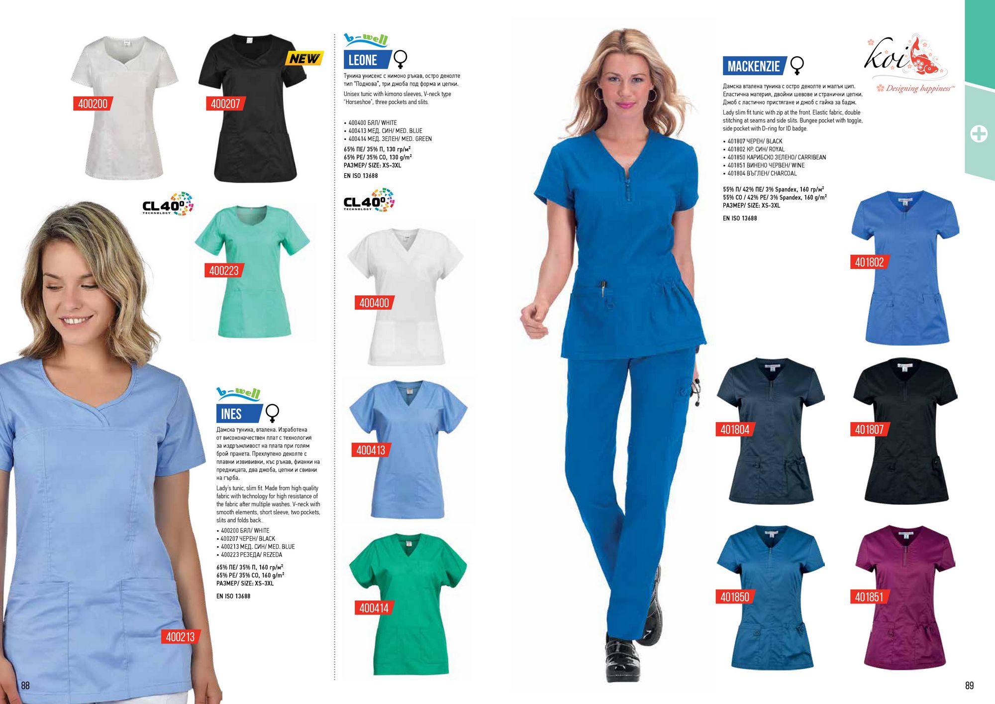 Description: Tunique médicale pour femme. Col en V de couleur contrastée, manches courtes. Cinq poches : 1 appliquée sur la poitrine et deux poches à la taille. Les poches intérieures se ferment avec des agrafes.
