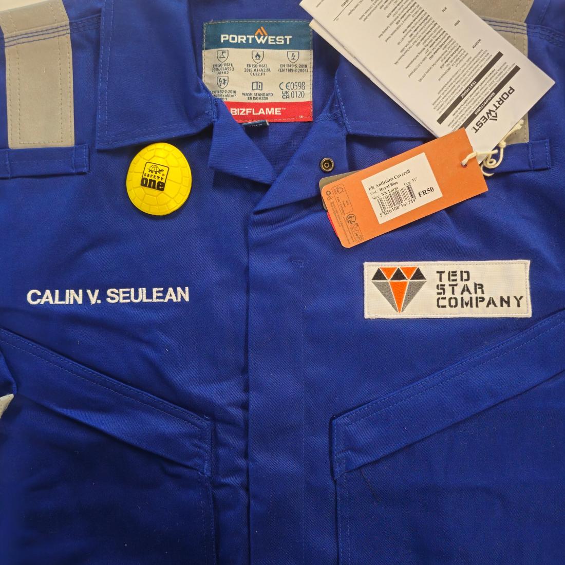 Descriere: Acest combinezon este perfect pentru cerințele din industria offshore. Fabricat cu o țesătură ignifugă extrem de inovatoare, cu bandă reflectorizantă de înaltă vizibilitate, cusută dublu pentru o vizibilitate sporită. Îndeplinind toate standardele EN necesare, caracteristicile includ cusături întărite triple, benzi de înaltă vizibilitate pe umeri, brațe și picioare, fermoar frontal reversibil ascuns, din alamă și două buzunare la piept, oblice, în partea din față, cu fermoare ascunse din alamă.