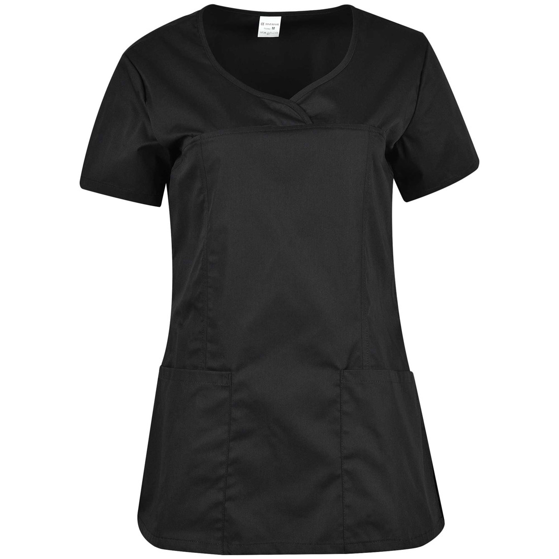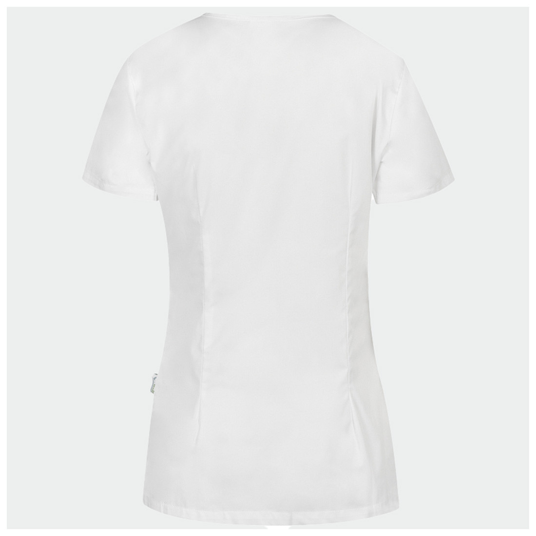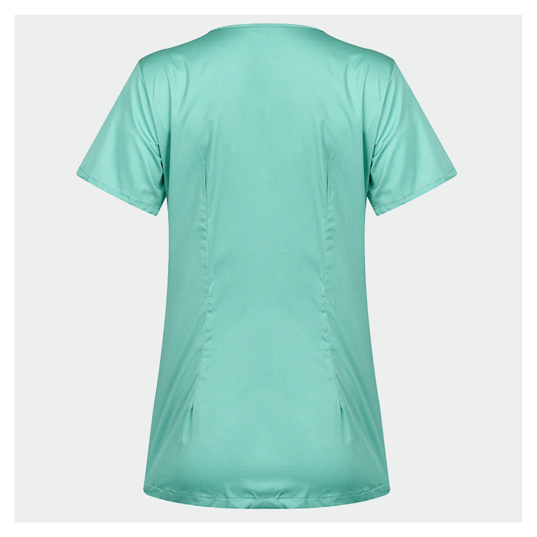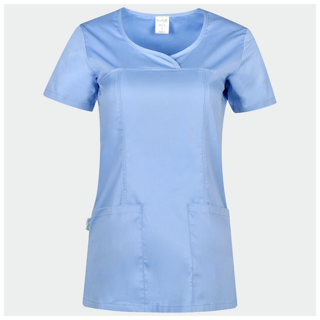 Descriere: Tunica medicala de dama cu maneca scurta. Croiala slim fit. Confectionata din material de inalta calitate, cu tehnologie pentru rezistenta ridicata a tesaturii dupa spalari multiple. Guler in V cu usor arcuit. Doua buzunare in talie. Pense la spate si slituri in laterale.