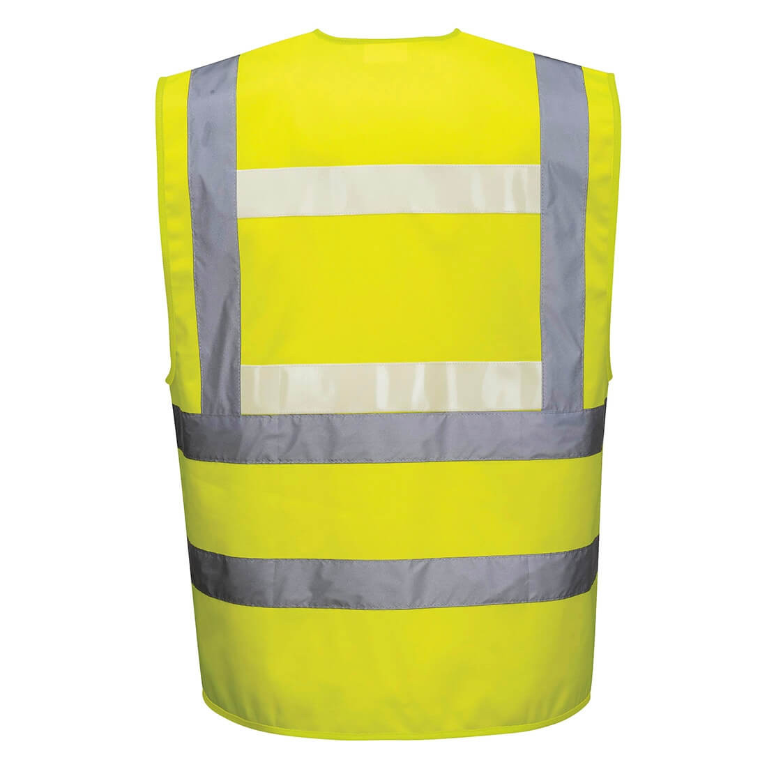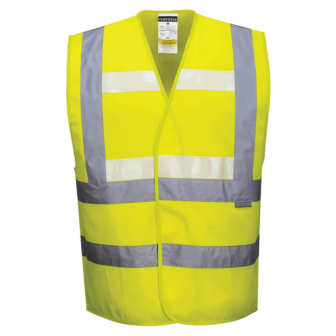 Descriere: Aceasta vestă clasică foloseste funcția noastră extrem de inovatoare Glowtex cu triplă tehnologie. Oferă vizibilitate avansată prin combinarea materialului fluorescent, a benzii reflectorizante HiVis Tex si a benzii fosforescente Glowtex care straluceste în întuneric. Recomandată pentru purtare ziua, noaptea și în condiții de întuneric total.