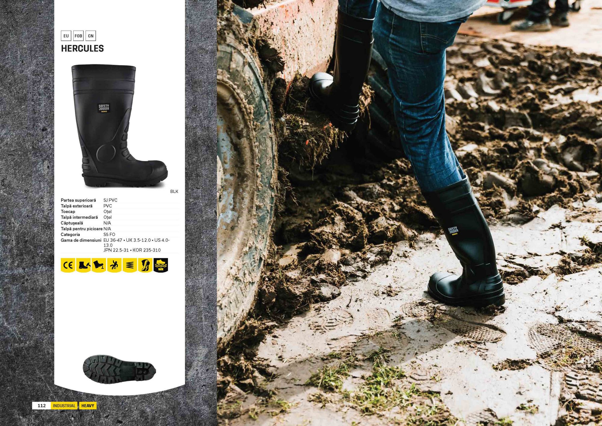 Descriere: Pășiți în lumea siguranței de neegalat cu cizmele de siguranță HERCULES. Confecționate pentru cele mai dure condiții, aceste cizme oferă rezistență la alunecare, o vârf de oțel și o talpă intermediară din oțel pentru o protecție maximă. Fie că lucrați în industria chimică, în minerit sau în construcții, aceste cizme impermeabile vă vor menține picioarele uscate chiar și în cele mai umede condiții. În plus, caracteristica antistatică vă asigură că sunteți în siguranță împotriva scânteilor sau a sarcinilor statice. Absorbția energiei de pe călcâi și ameliorarea durerii de postură vă asigură confortul pe tot parcursul zilei. Pe scurt, acestea sunt "Hercules" printre cizmele de siguranță care oferă siguranță maximă fără a cheltui mulți bani. Industrii recomandate: Catering, Produse chimice, Curățenie, Construcții, Minerit, Petrol și gaze, Industrie. Medii Recomandate: Suprafețe inegale, Mediu umed. Standarde de siguranță: S5 / FO.