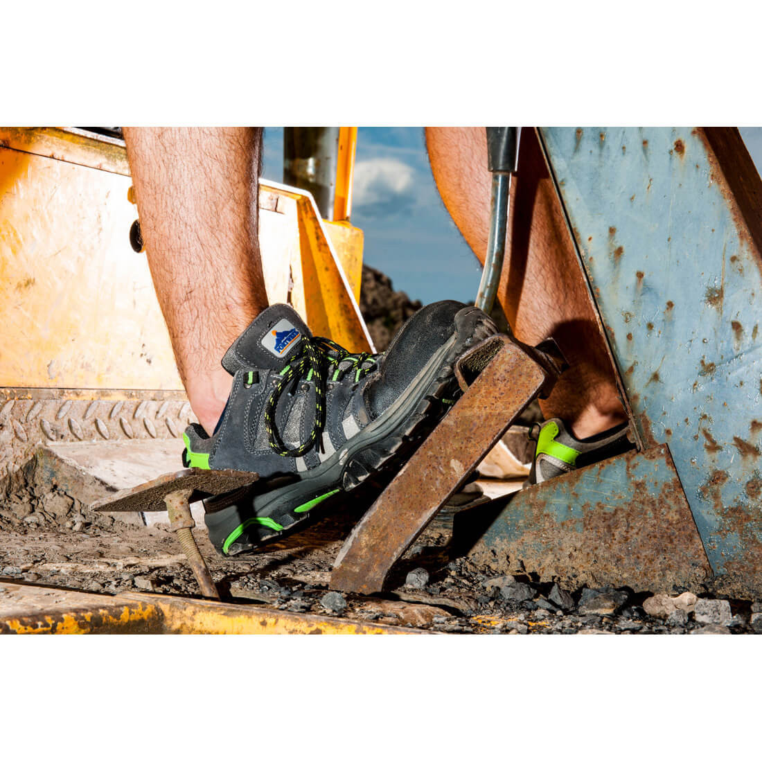 Descriere: Design modern fara a face compromisuri de siguranta. Pantoful Loire este prevazut cu bombeu si talpa intermediara din otel, talpa exterioara usoara din EVA/cauciuc pentru confort si rezistenta la alunecare.