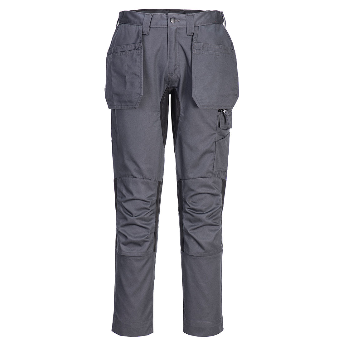 Descrizione: Un tessuto resistente in misto cotone e poliestere consente sia il lavoro alle massime prestazioni, sia il comfort. I pannelli stretch consentono facilità di movimento. Caratteristiche ingegnose includono tasche holster multifunzionali, tasche per ginocchiere con caricamento dall'alto e una tasca sulla coscia multidirezionale di facile accesso per riporre al sicuro telefono, chiavi ed attrezzi.