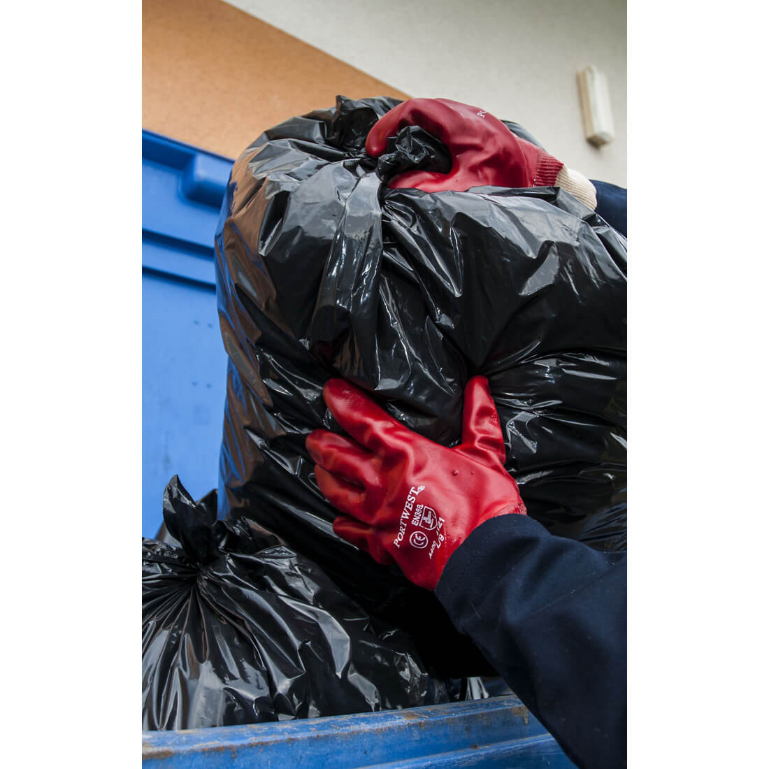 Descriere: Plasate in topul vanzarilor, manusile de lucru din PVC cu mansete tricotate sunt complet impregnate si au o captuseala din bumbac. Finisajul neted are o rezistenta excelenta la abraziune.